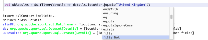 val ukResults = detailsDs.filter(details => details.location.equals("United Kingdom"))